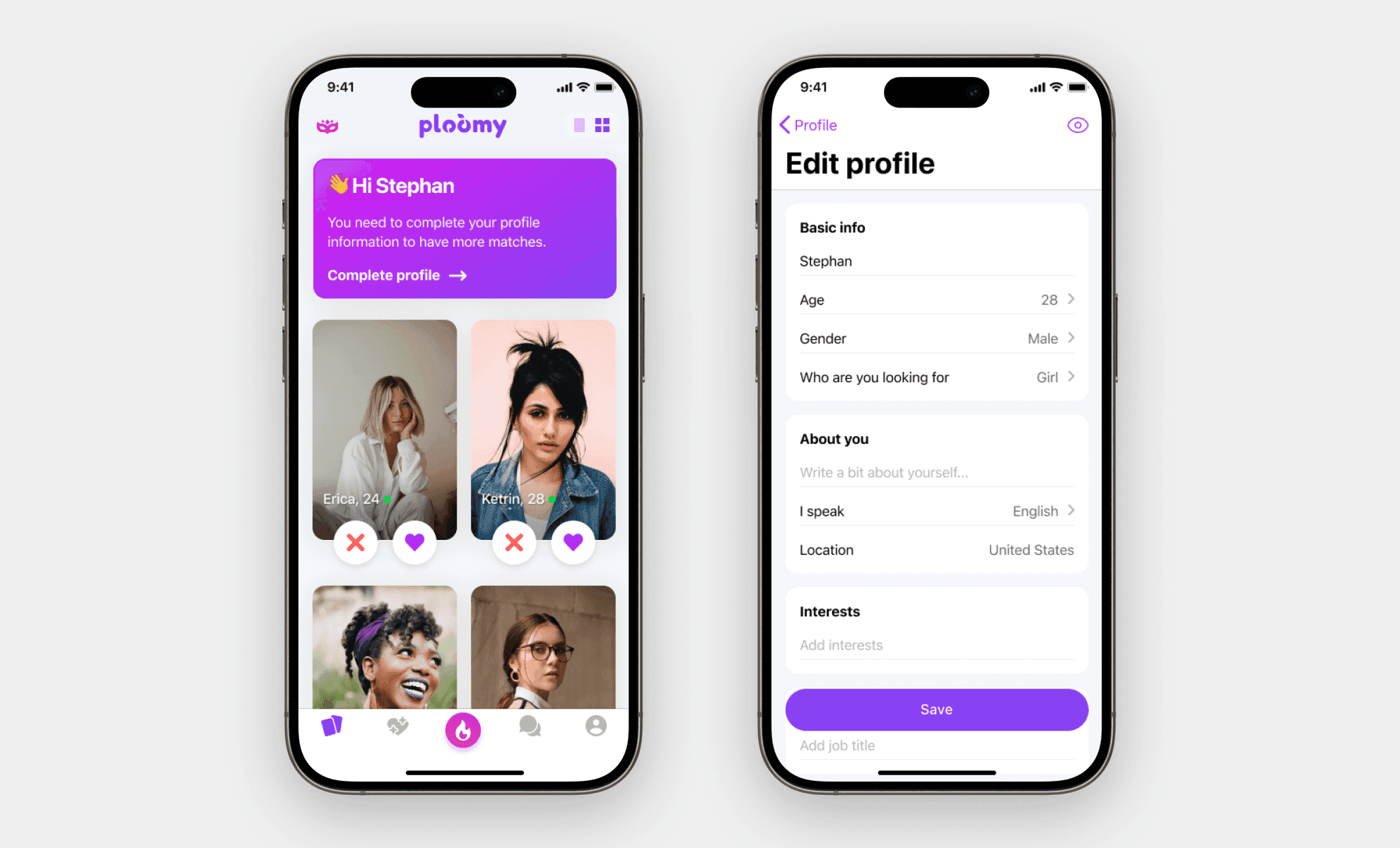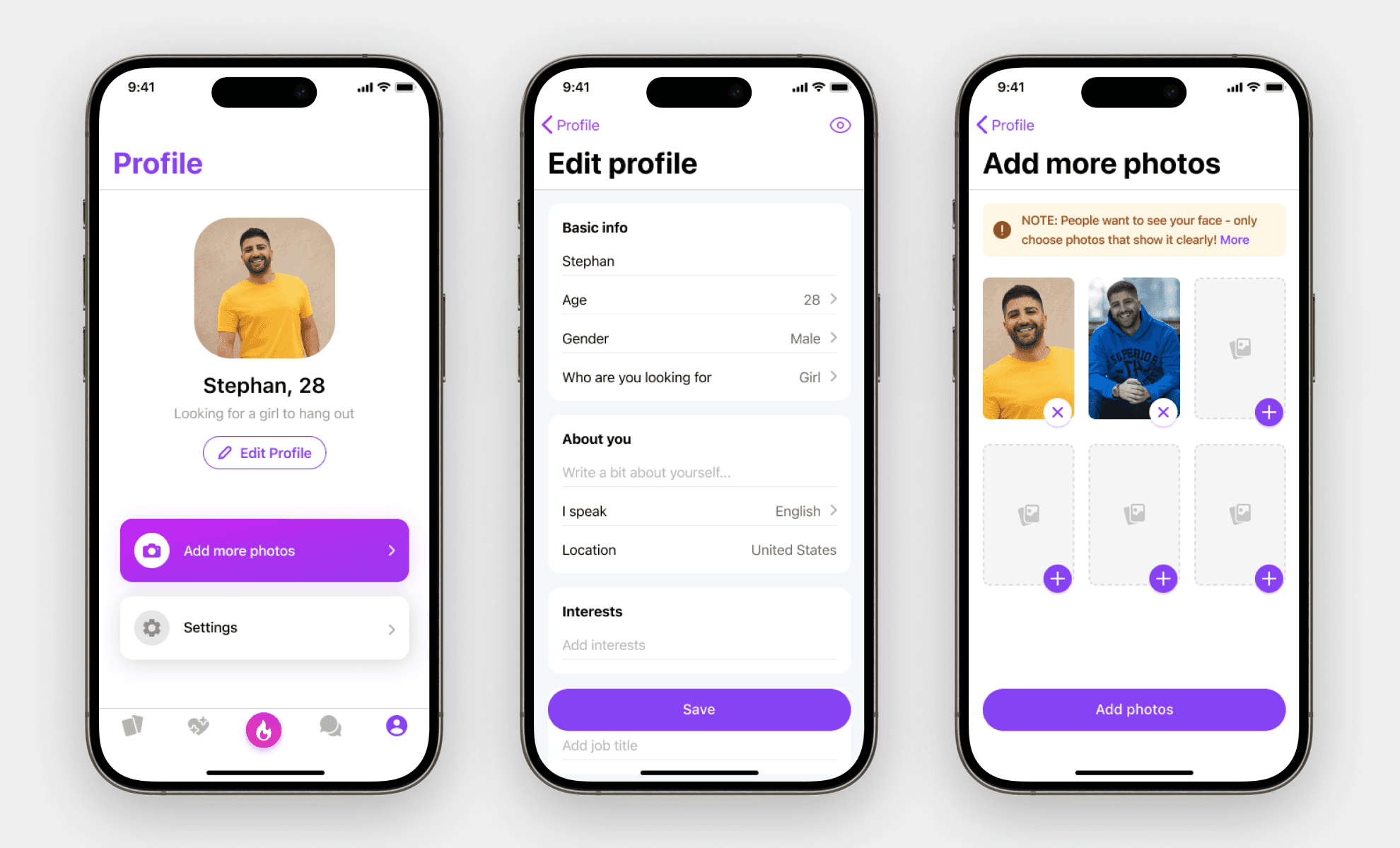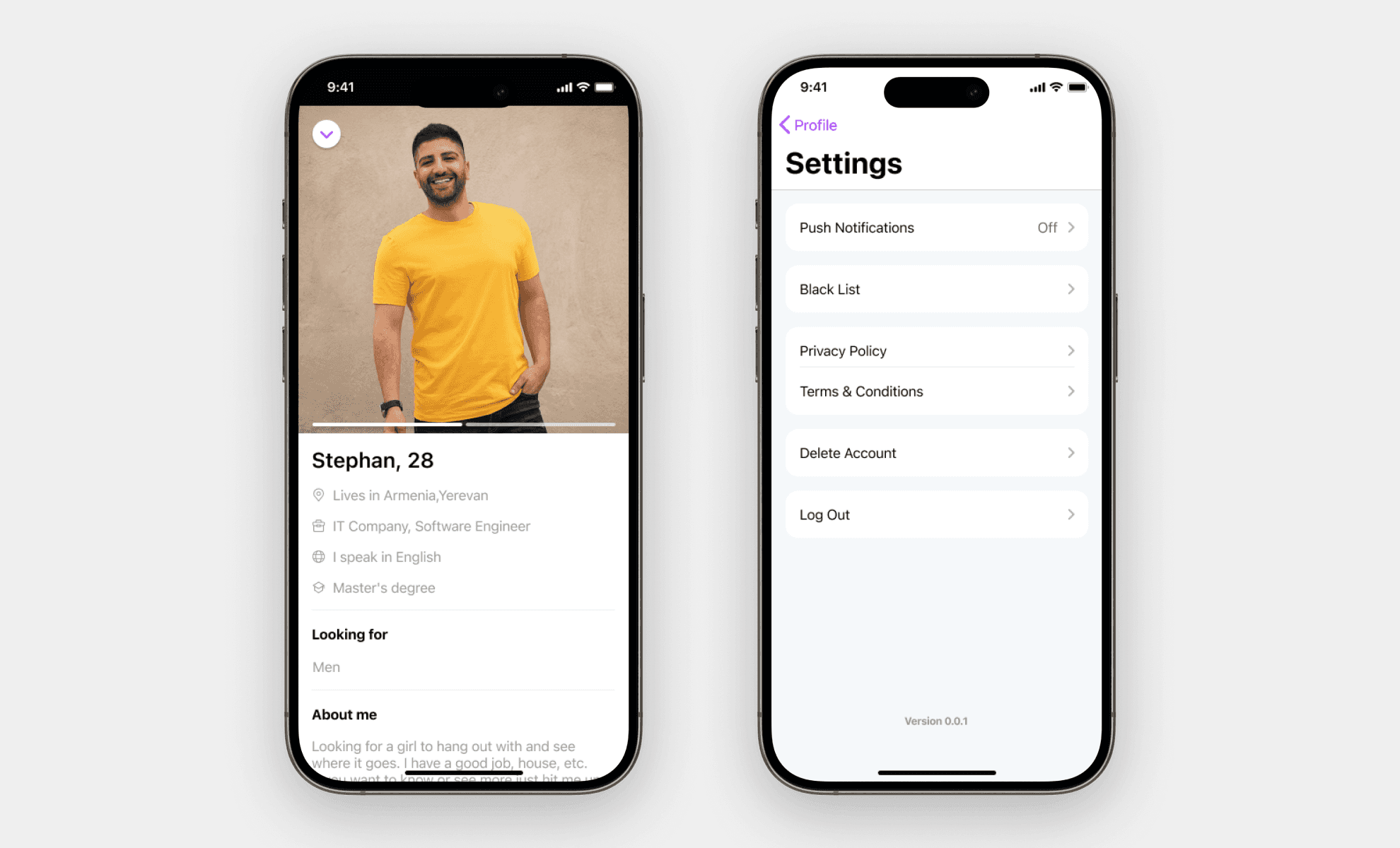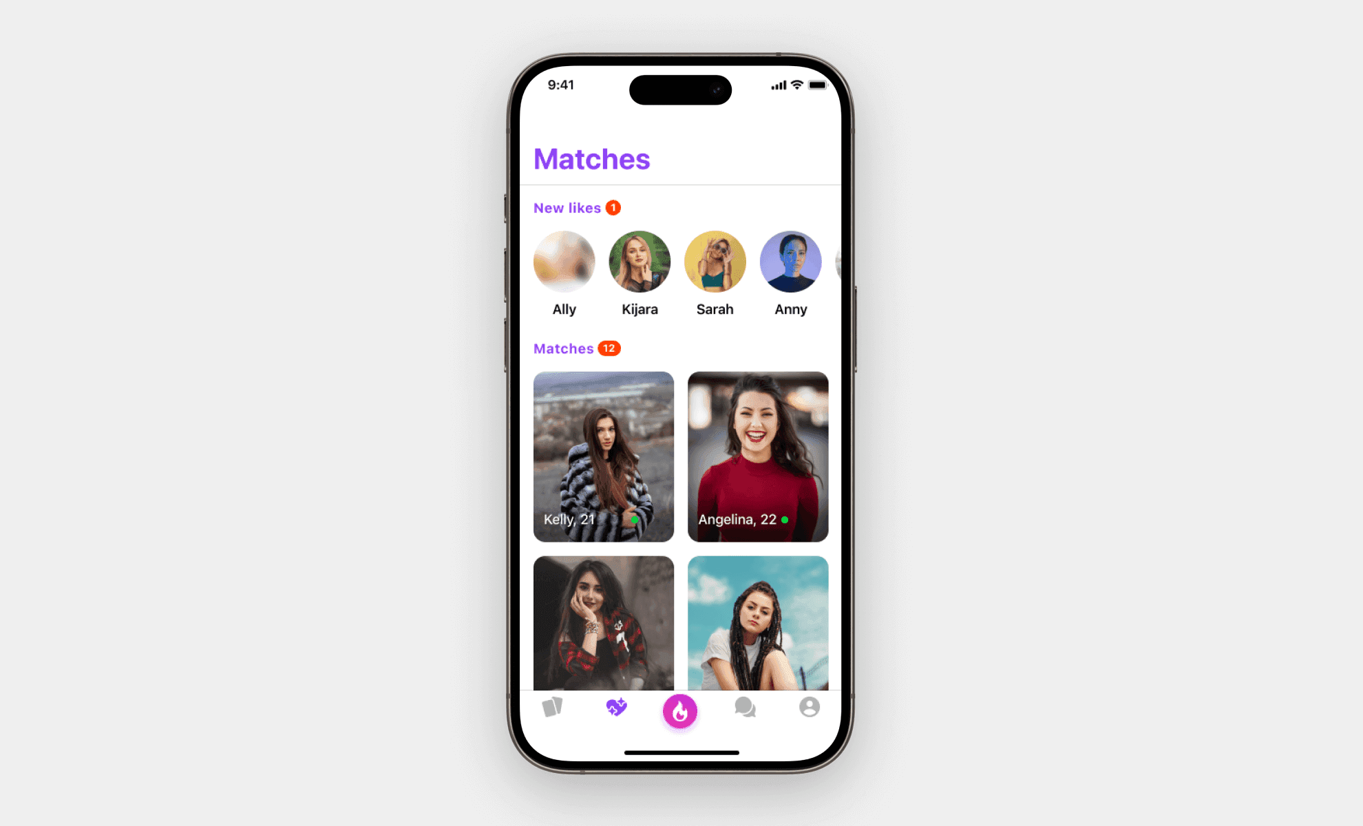 A fresh, modern dating app for US market with 20K users, where you can chat, meet new people, and build real connections.