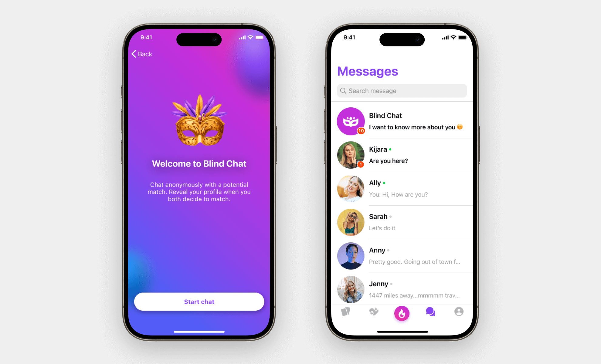 To increase chat engagement and keep retention, we introduced and tested a new feature called "Blind Chat", an anonymous 1-on-1 messaging experience designed to lower pressure and spark genuine curiosity.