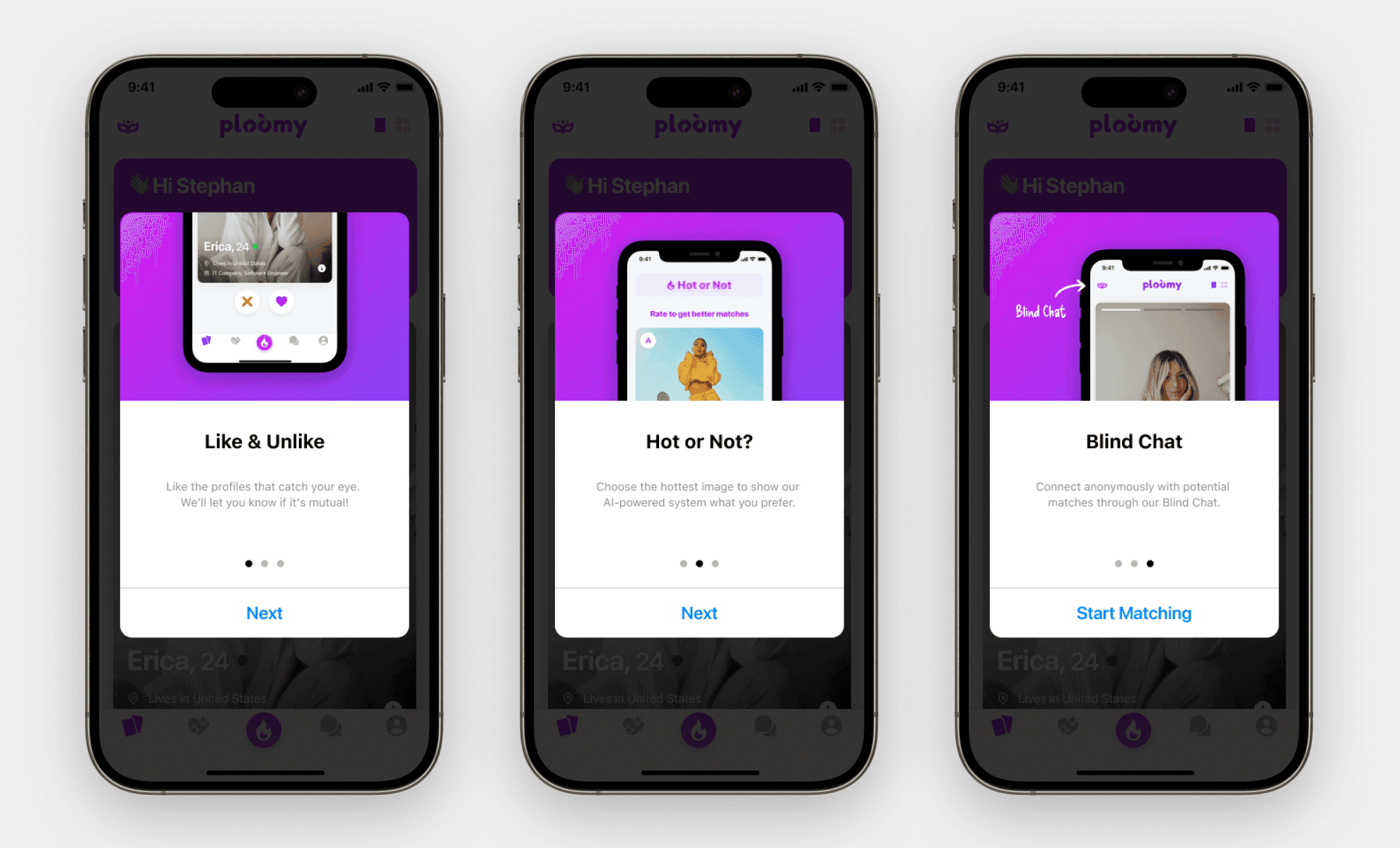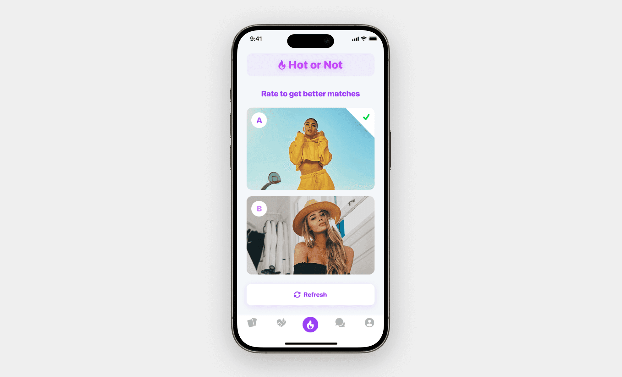 To improve the quality of user matches, I designed an interactive “Hot or Not” feature that feels like a game while training the algorithm in the background. Users are shown two profile images and asked to select the one they prefer, helping us better understand their visual and style preferences.
